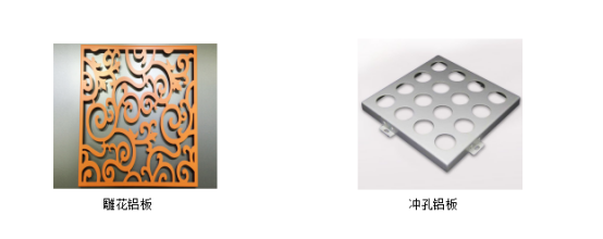 鋁板的種類很多,有雕花型鋁板、氟碳鋁板、沖孔鋁板、異形幕墻鋁板、天花鋁板等,都是用作建筑裝飾材料。
