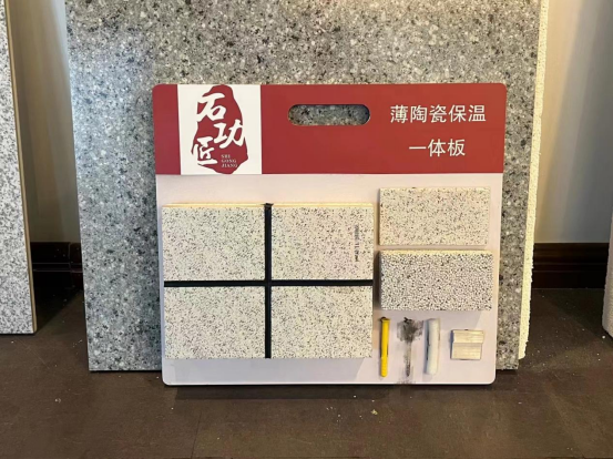 石功匠薄陶瓷保溫一體板系統(tǒng)樣板中含有施工當(dāng)中所需要用到的所有材料,讓客戶能更清晰的了解到我們薄陶瓷保溫一體板系統(tǒng)組成,施工方法。